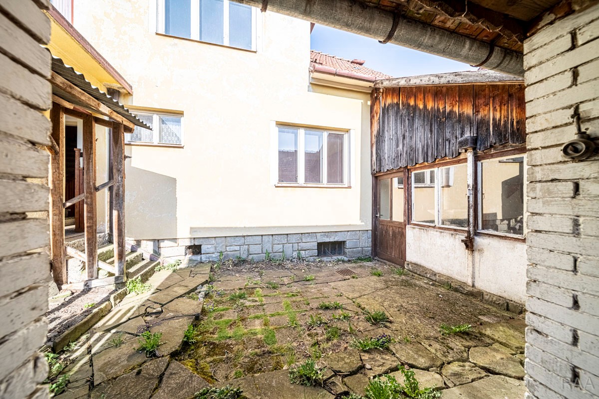 Prodej samostatně stojícího rodinného domu 4+1 v blízkosti centra obce Pitín. Celková plocha pozemku 1 183m², z toho zastavěná plocha a nádvoří 103m², užitná plocha 109m². Dům patrový, podsklepený, ve dvoře hospodářské skladové stavení. Svislé nosné konstrukce z pálených cihel, střešní konstrukce z dřevěných trámů, střešní krytina pálená taška, okapy a klempířské prvky pozink. plech, okna zdvojená s dřevěnými rámy, podlahy betonové a v patře prkenné, vytápění ústřední plynovým kotlem, ohřev teplé vody elektrický bojler, k domu připojeny všechny inženýrské sítě, dům v původním udržovaném stavu, za domem velká oplocená zahrada se studnou, před domem zahrada s možností parkování. Vnitřní dispozice: 1. PP (suterén): garáž, sklepní místnosti, kotelna; 1. NP (přízemí): vstupní veranda, chodba, koupelna s vanou, kuchyně s jídelnou, obývací pokoj, ložnice, komora a vstup na schodiště do sklepa; 2. NP (patro): schodišťový prostor, půdní prostory, 2x pokoj, pracovna. Volné ihned.